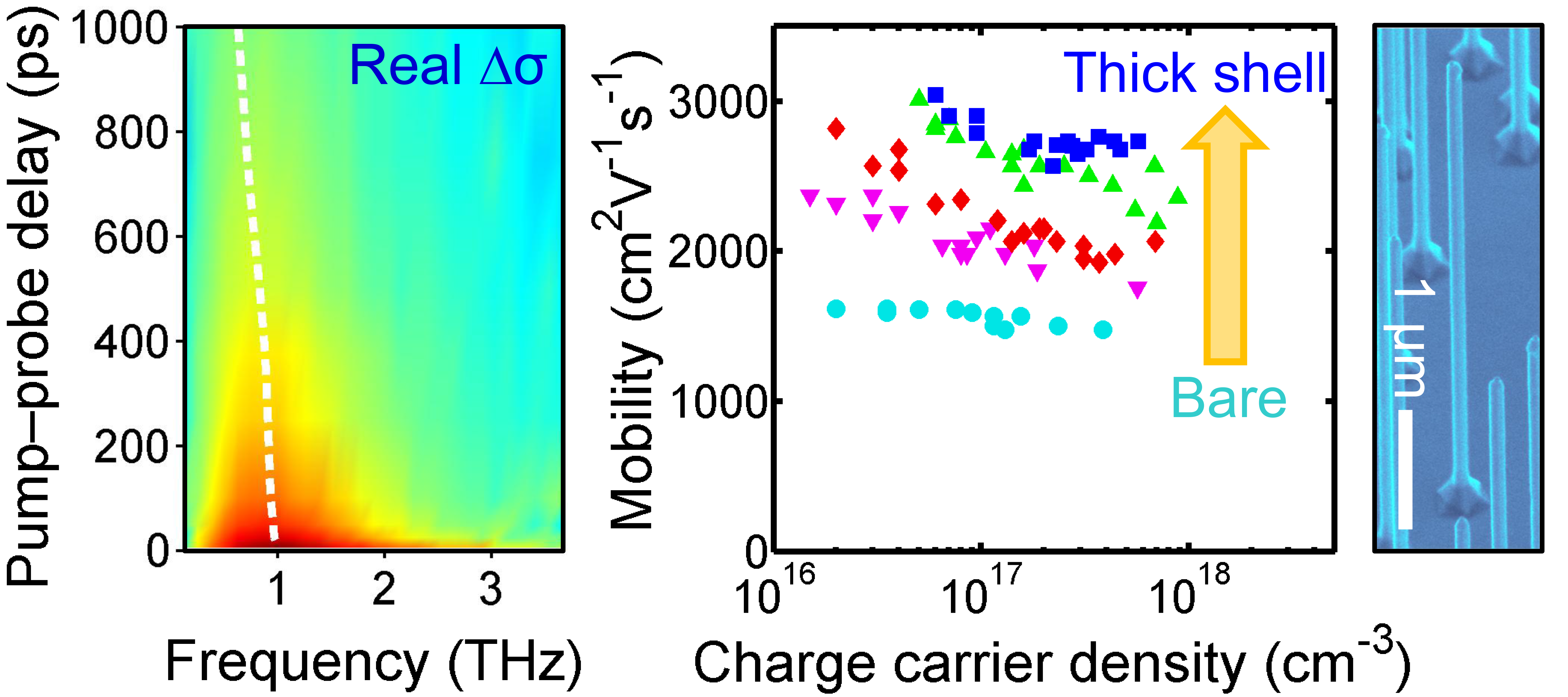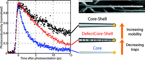 - Carrier lifetime and mobility enhancement in nearly defect-free core--shell nanowires measured using time-resolved terahertz spectroscopy