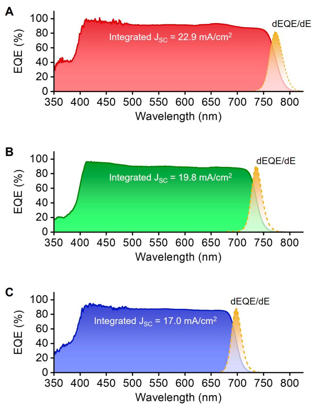 pdf ][ DOI:10.1126/science.ado2302 ] We demonstrate a vapor-based amino-silane passivation that reduces photovoltage deficits to around 100 millivolts (>90percent of the thermodynamic limit) in perovskite solar cells of bandgaps between 1.6 and 1.8 electron volts, which is crucial for tandem applications. |